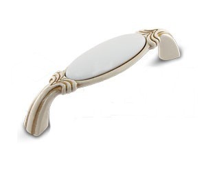 Ручка скоба WMN.68.01.00.096.V5, материал Замак Керамика, отделка Слоновая кость Золото Керамика Золотая патина, 114*26*31 мм