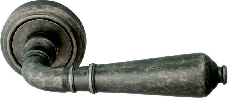 Дверная ручка на круглой розетке "ANTIK" 130V DAS, материал Латунь, отделка Серебро, 130*50 мм